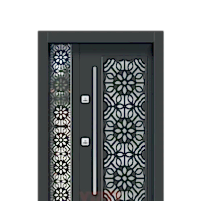 YİĞİT ÇELİK KAPI YC 109 çift kapı, diagonal metal aksanlı kompozit yüzey